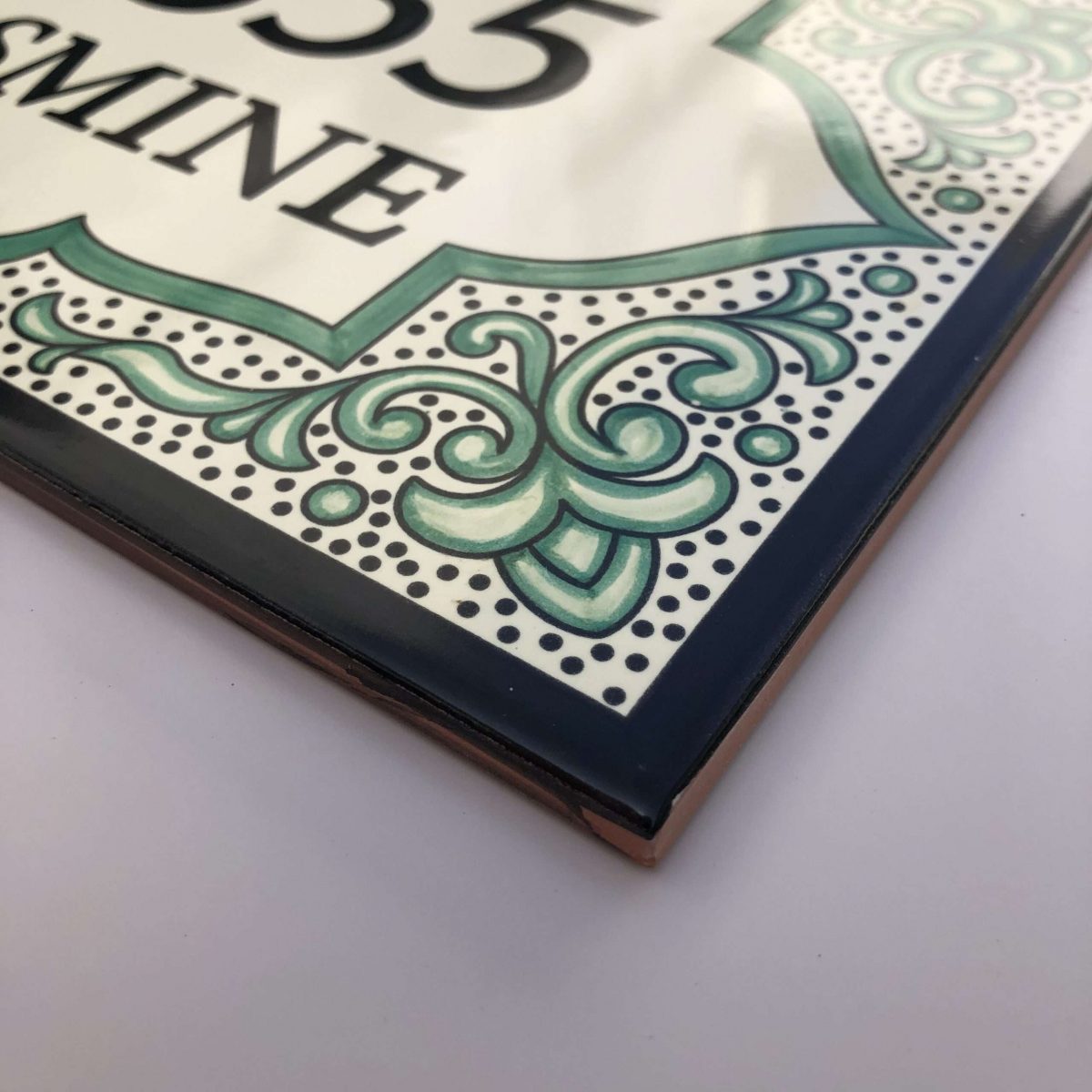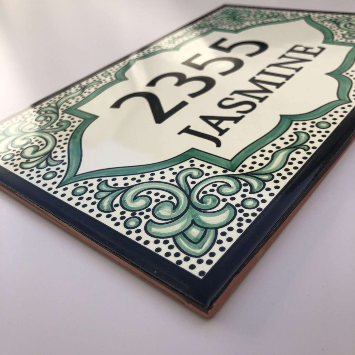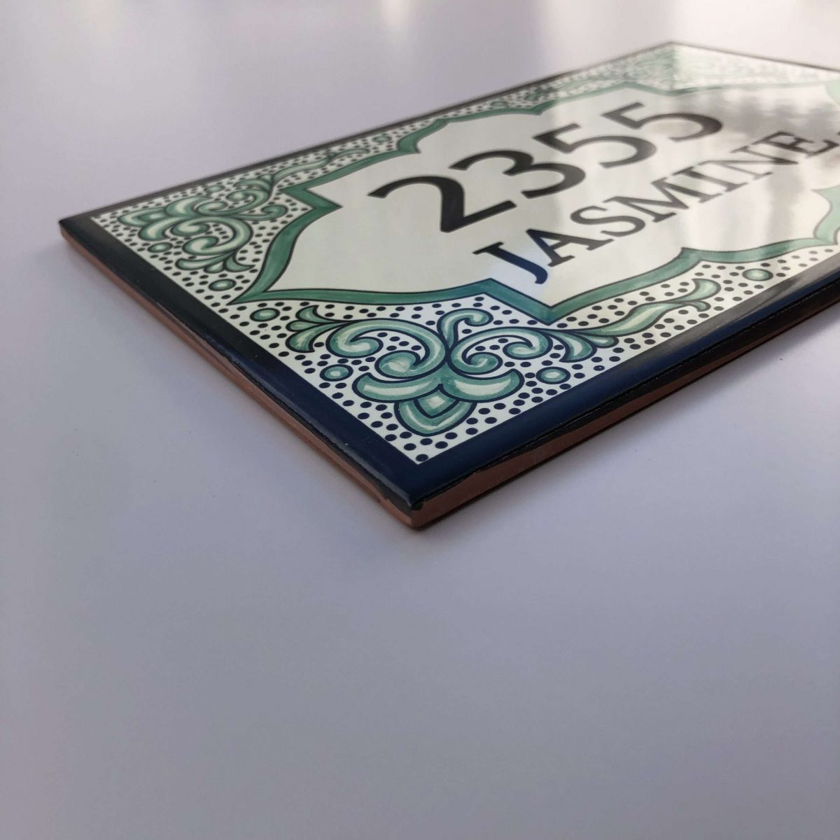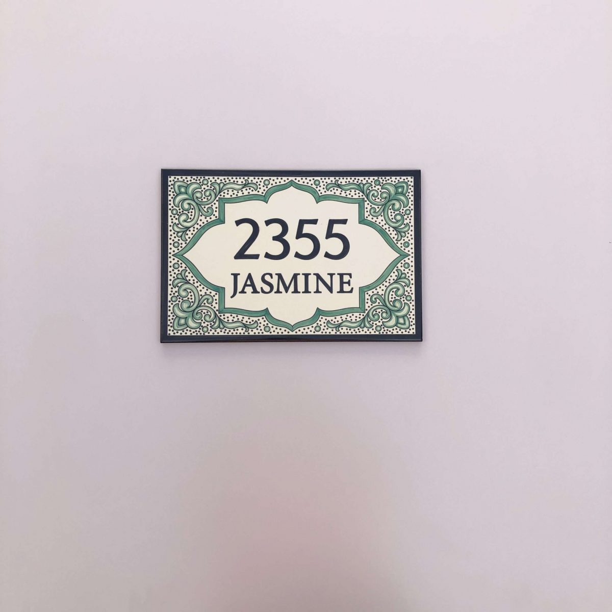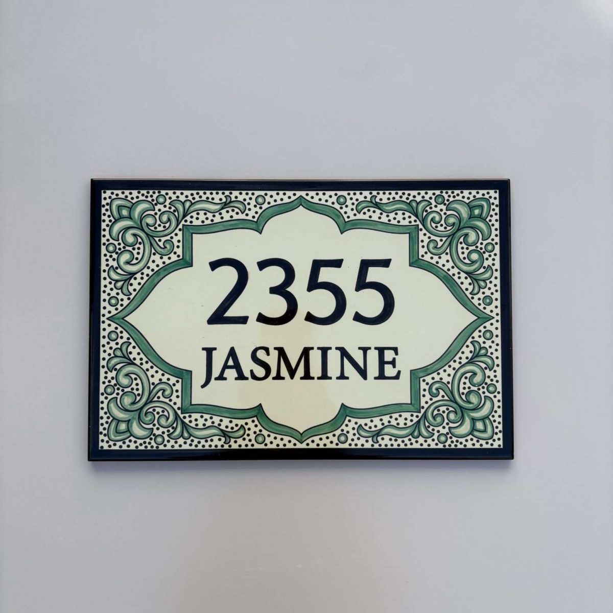 Azulejo con el nombre “2355 JASMINE”, 20 x 30 cm, cerámica artesanal de España, letreros de dirección.